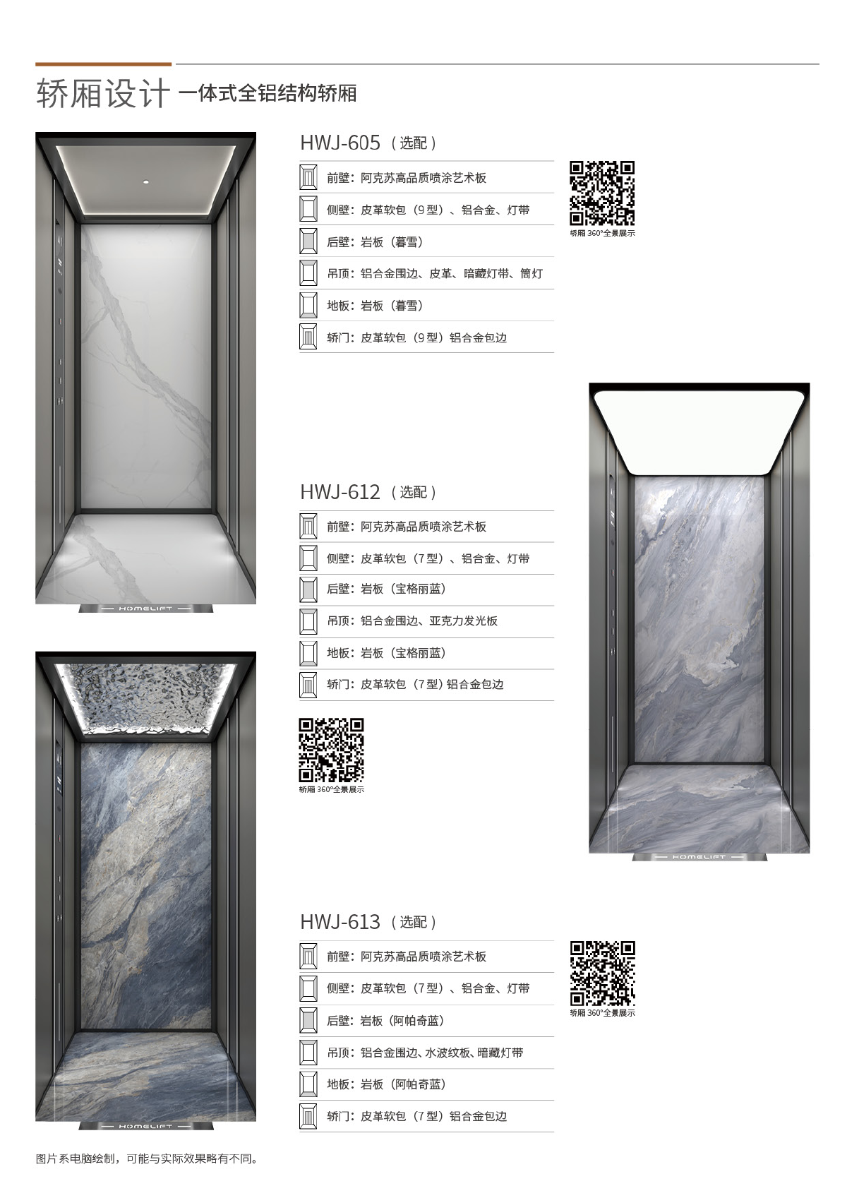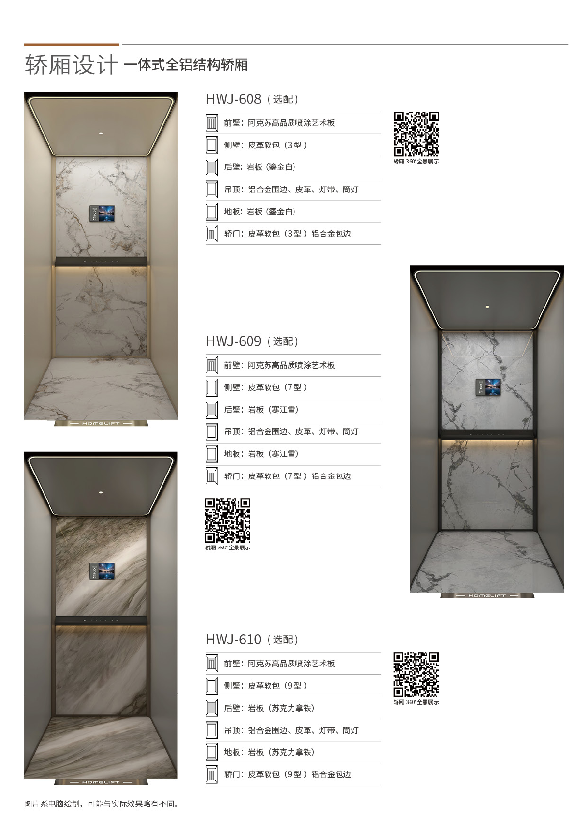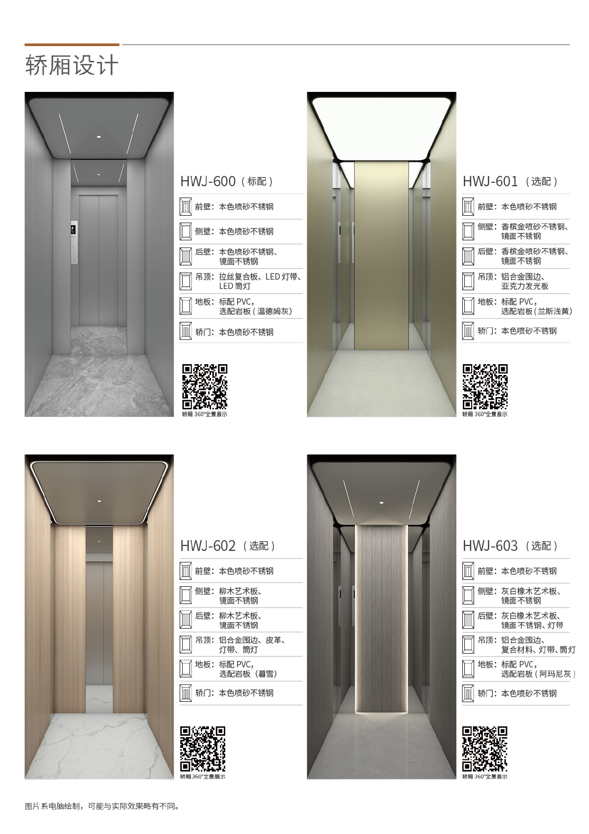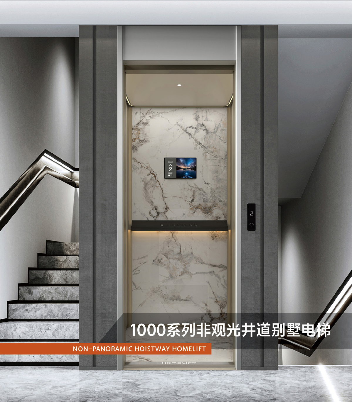 The 1000 series non-sightseeing shaft villa elevator features a modular cabin design that allows for easy replacement and customization in the future.